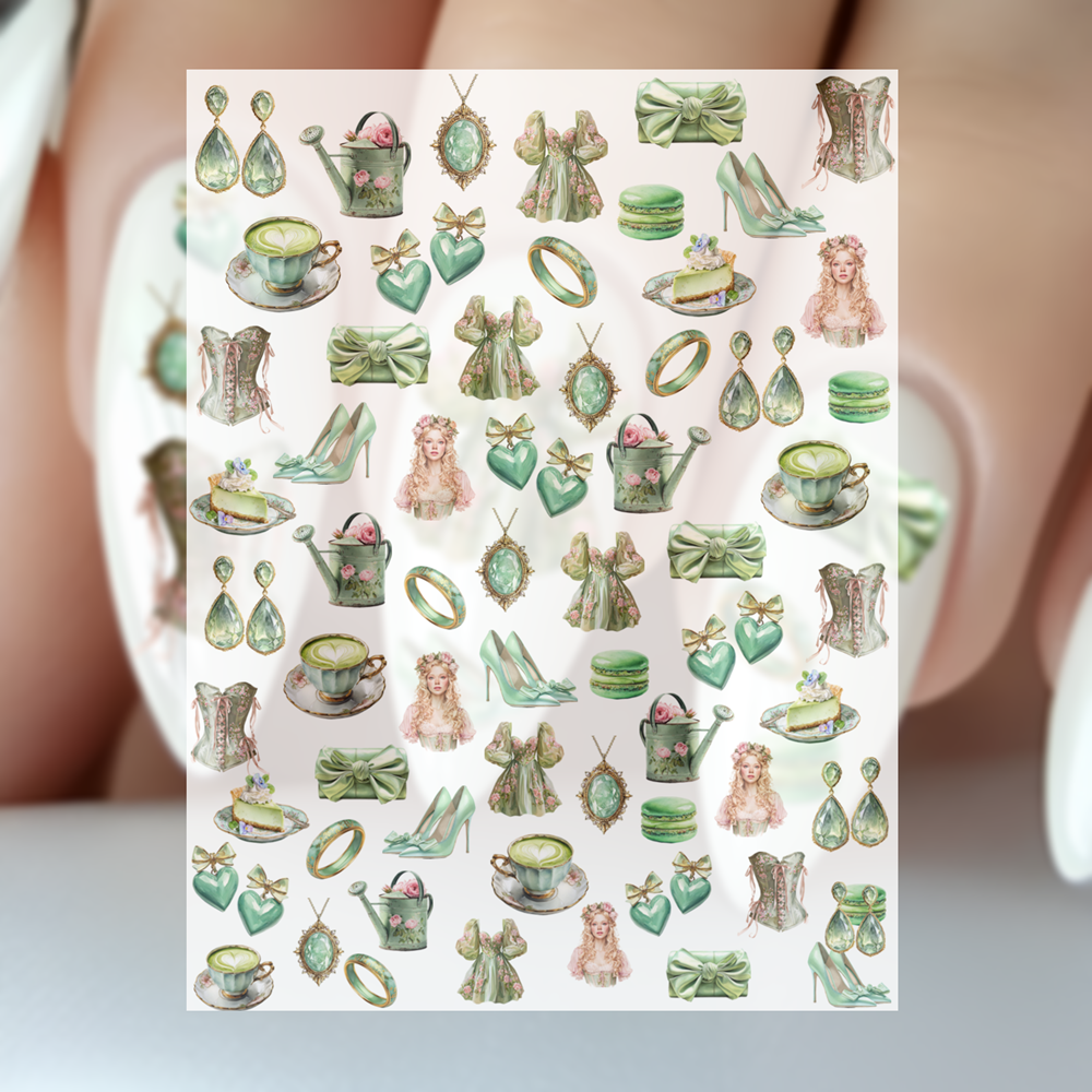 Nailsticker – Viktorianische Mode – Grün